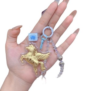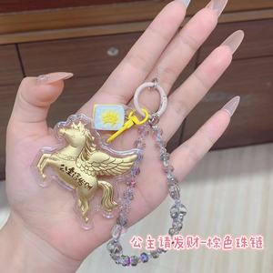 金箔黄金钥匙扣飞马串珠公主请发财可爱女生手机链挂件闺蜜直播款