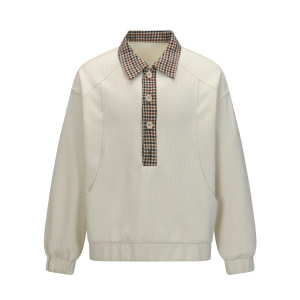 250150美式复古中性高级感解构型格纹拼接设计男式翻领长袖T恤
