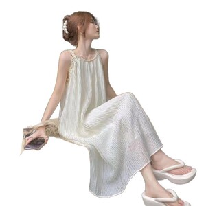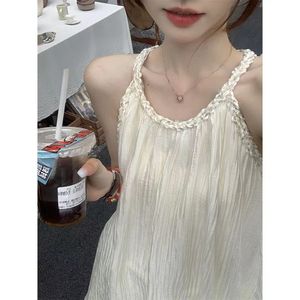 挂脖仙气小吊带连衣裙子女夏季新款宽松无袖露肩质感中长裙小个子
