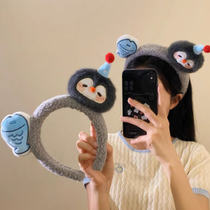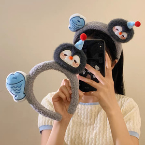 可爱卡通企鹅小鱼毛绒发箍创意搞怪少女拍照发卡秋冬压发洗脸头箍