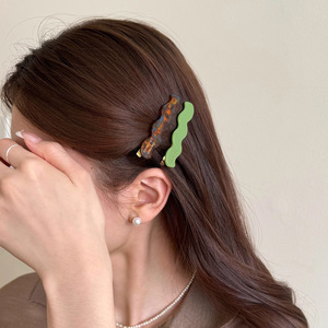 韩系醋酸波浪一字发夹女前额碎发刘海夹高级感侧边鸭嘴夹发卡头饰