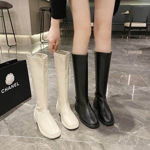 后拉链长筒靴子2025秋冬新款显瘦圆头骑士靴时尚英伦风厚底马丁靴