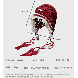 珍珠流苏蕾丝边镂空针织帽子女民族风显脸小包头帽旅游拍照套头帽