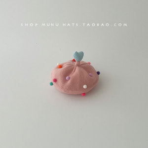 爱心彩点贝雷帽 粉+2个月-3岁(头围42-49cm)+均码