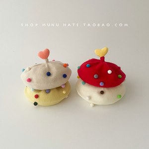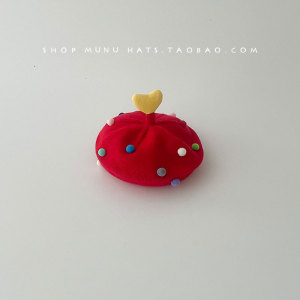爱心彩点贝雷帽 红+2个月-3岁(头围42-49cm)+均码