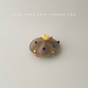 婴儿帽子冬天贝雷帽毛线帽韩版针织画家帽男女宝宝凹造型帽保暖帽