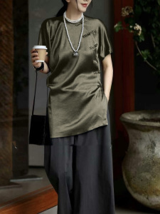 早秋羊毛混纺上衣简约复古新中式国风优雅禅意改良休闲宽松小衫女
