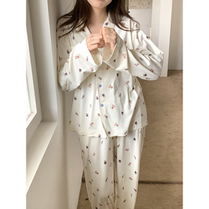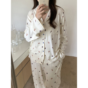 2025 ins夏季韩系温柔小熊针织休闲居家外穿睡衣套装