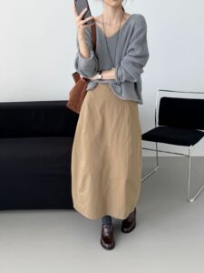 那末韩系花苞气球裙~设计款小众天丝棉高腰显瘦中长半身裙女6122