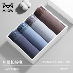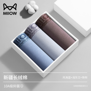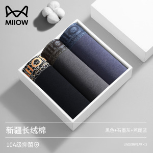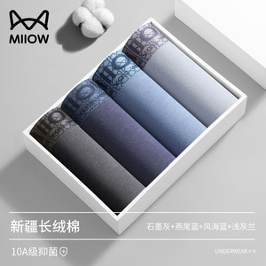 猫人40支长绒棉男士内裤透气10A抗菌裆四角平角裤 工厂直发内裤男