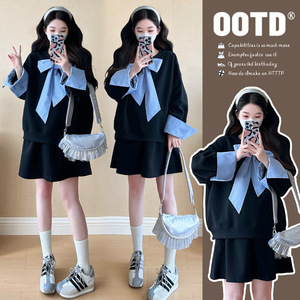 现货2025秋季新品孕妇套装甜美海军领学院风系带百搭时尚孕妇套装
