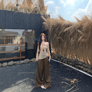 实拍 2025韩系辣妹穿搭晕染不规则长袖针织衫秋季抽绳休闲裤套装