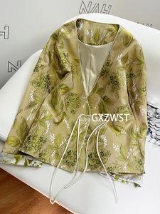 【现货】缎纹提花V领新中式国风外套2025秋季新款一粒扣刺绣上衣