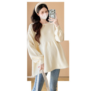 实拍孕妇装圆领娃娃衫毛衣秋冬新款慵懒风宽松显瘦百搭套头上衣