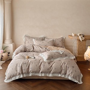 2025新款100%全棉磨毛印花四件套加厚纯棉复古套件宿舍三件套批发