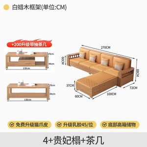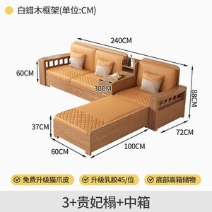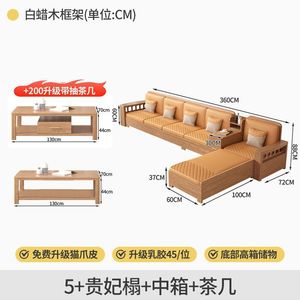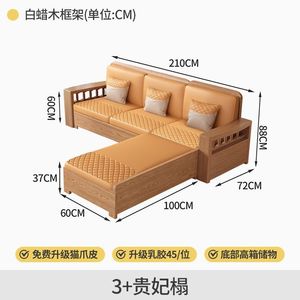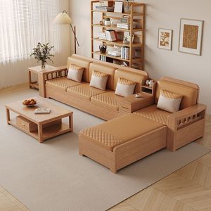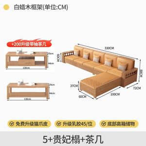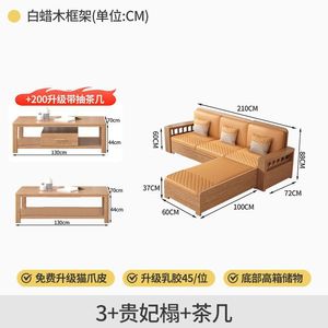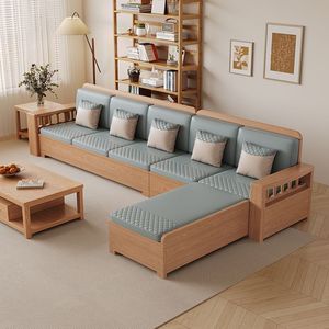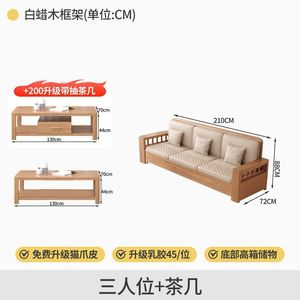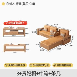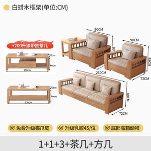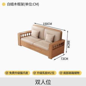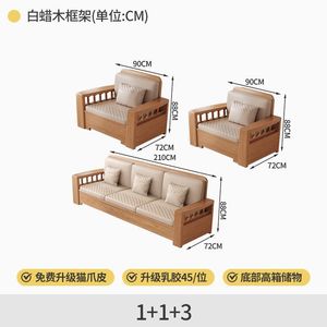 组合小户型冬夏简约实木客厅白蜡原木色现代储物家具北欧沙发两用