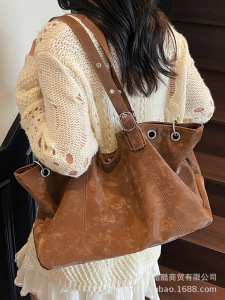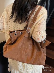 大容量褶皱包包女秋冬百搭2025新款休闲单肩腋下包上班通勤托特包