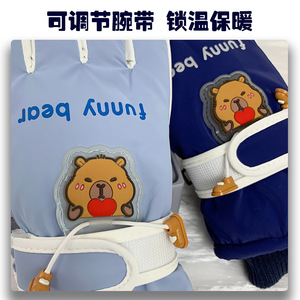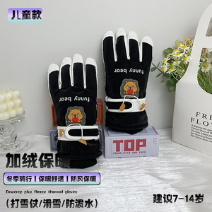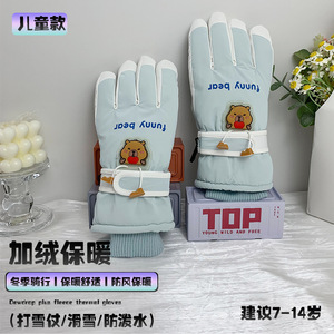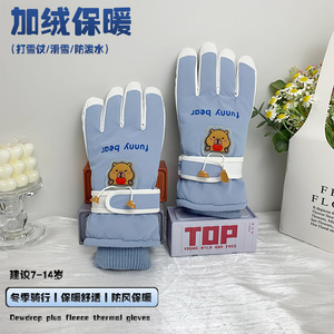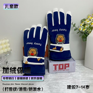 儿童加绒保暖手套可爱小熊防泼水冬季滑雪打雪仗骑行防风防寒手套