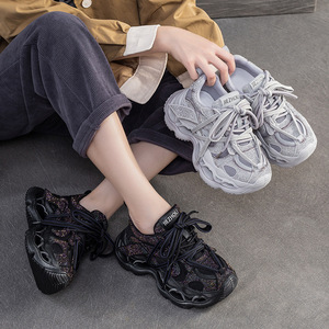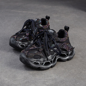 杰骤2025秋冬新款时尚烫钻松糕跟老爹鞋休闲做旧舒适单鞋百搭女鞋