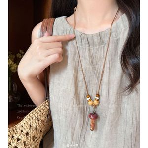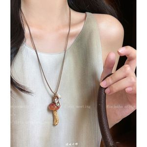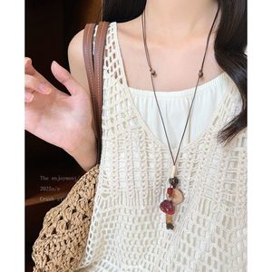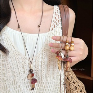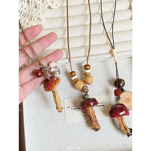 新中式天然蘑菇串珠项链女2025新款森系长款毛衣链独特民族风配饰