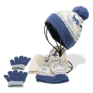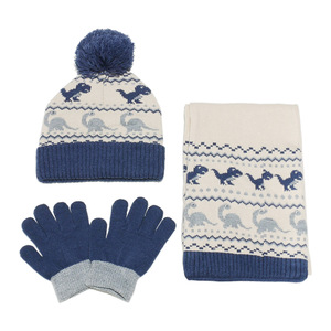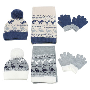 跨境亚马逊Temu秋冬新款男童恐龙针织套装儿童帽子围巾手套三件套