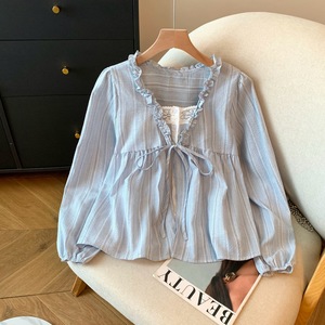 广州十三行高货爆款~宽松假两件撞色拼接设计通勤休闲百搭条纹衣