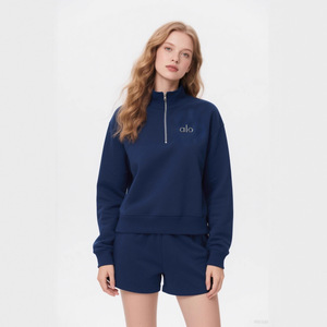 2025新款跨境alo卫衣男女秋冬yoga宽松夹克立领显瘦外套健身