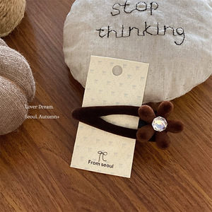 1个水钻深咖植绒花朵咖色水滴丝绒bb夹