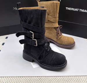 【现货】大码41-43复古骑士靴女2025冬新款粗跟中筒西部靴机车靴