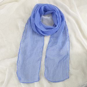 跨境热销秋季新款单色皱布丝巾气质百搭时髦复古文艺时髦装饰领巾