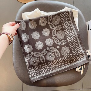 复古咖色小方巾女百搭丝巾70方巾护颈防晒系脖高级感围巾领巾春秋
