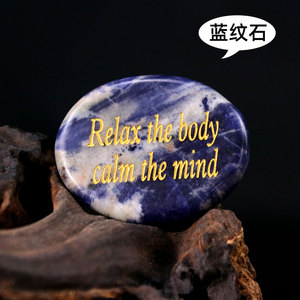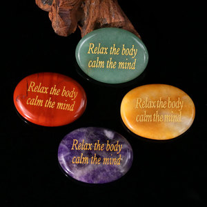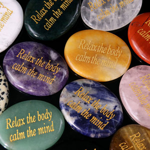 D115跨境天然粉白紫水晶椭圆雕刻字忘忧石把玩鼓励解压力量掌心石