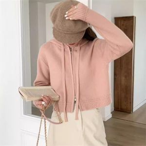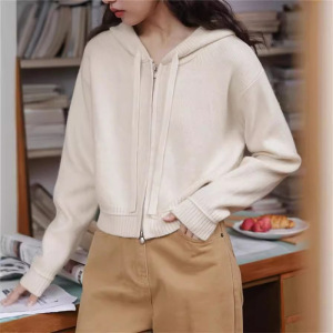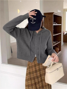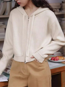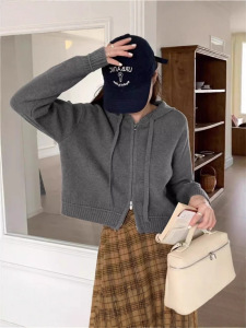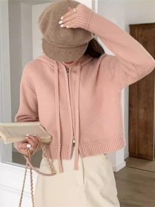 慵懒风连帽针织开衫女2025秋冬新款韩版宽松洋气短款休闲毛衣外套