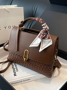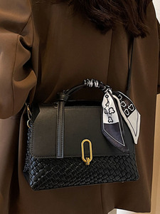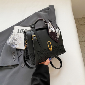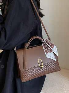 复古高级感手提包2025新款秋季时尚编织小方包撞色简约休闲斜挎包