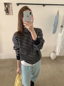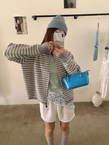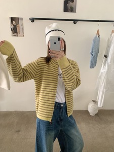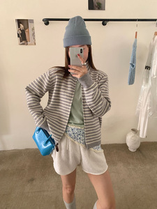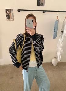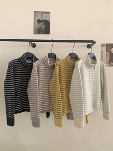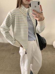 韩系egg皮拉链条纹毛衣开衫 复古撞色针织外套女秋冬季新款拉链衫