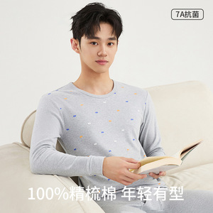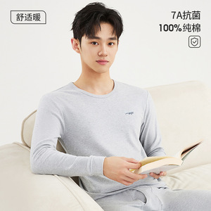 保暖内衣男全棉薄款线衣线裤套装打底内穿棉毛衫青年纯棉秋衣秋裤