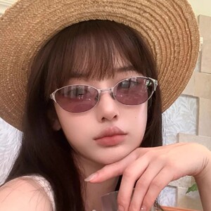 欧美椭圆老钱风辣妹街拍紫色太阳镜女千禧猫眼高级感防紫外线墨镜