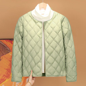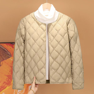 大衣内搭90白鸭绒圆领轻薄短款外套2025秋冬新款保暖内胆羽绒服女