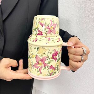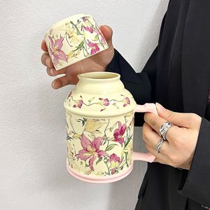 百合花复古水杯送女生生日礼物百合花杯子伴手礼送老师教师节礼物
