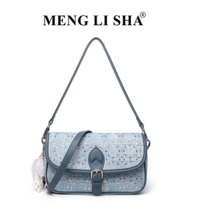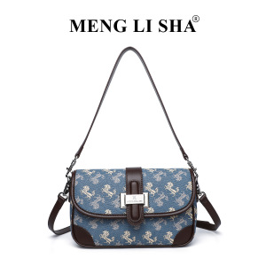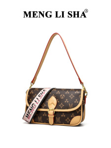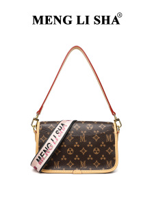 新中古老花单肩斜挎小方包高级感时尚邮差包手提法棍包牛角包包女
