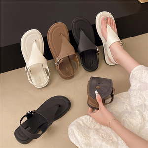 2025年夏季新款简约复古时尚百搭休闲凉鞋韩版小众沙滩夹趾凉鞋女