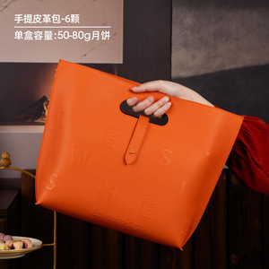中秋月饼蛋黄酥包装盒皮质手提包创意礼盒简约6颗装现货盒子空