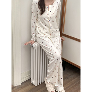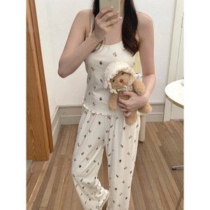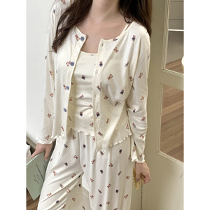 2025 ins韩系温柔小熊针织休闲居家外穿睡衣三件套带胸垫