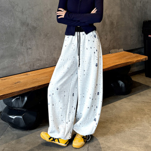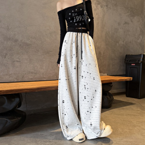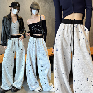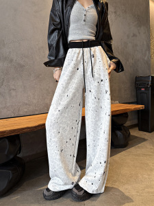 2025秋冬新款美式运动裤女重工破洞提花卫裤设计感慵懒百搭神裤子