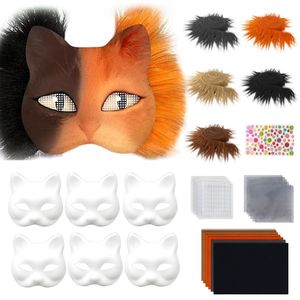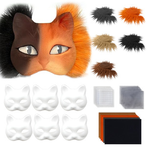 猫脸面具DIY套装包括空白猫面具毛绒人造毛皮织物刷塑料网片