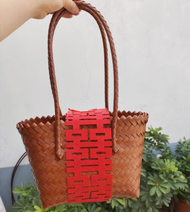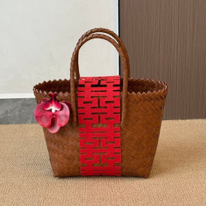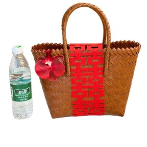 棕色竹节把手,篮子加配饰花朵喜字