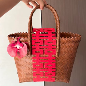2025小红书新款结婚土味伴手礼品编织篮子伴娘礼品包编织篮子女包