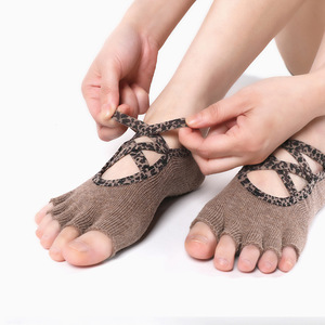 瑜伽袜子专业防滑女五指鞋豹纹普拉提室内运动健身舞蹈分趾地板袜