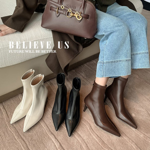 瘦瘦靴女2025秋冬新款绒面显瘦尖头细跟弹力袜靴法式气质高跟短靴