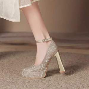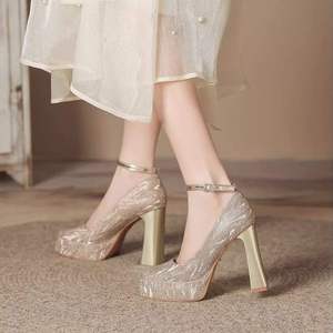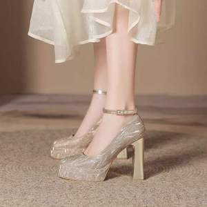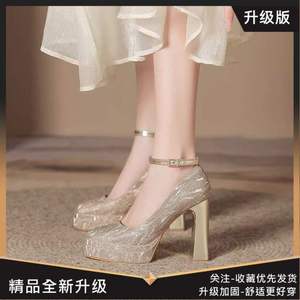 防水台细闪绝美增高高跟鞋婚鞋不累脚不掉跟一字扣小个子双层少女